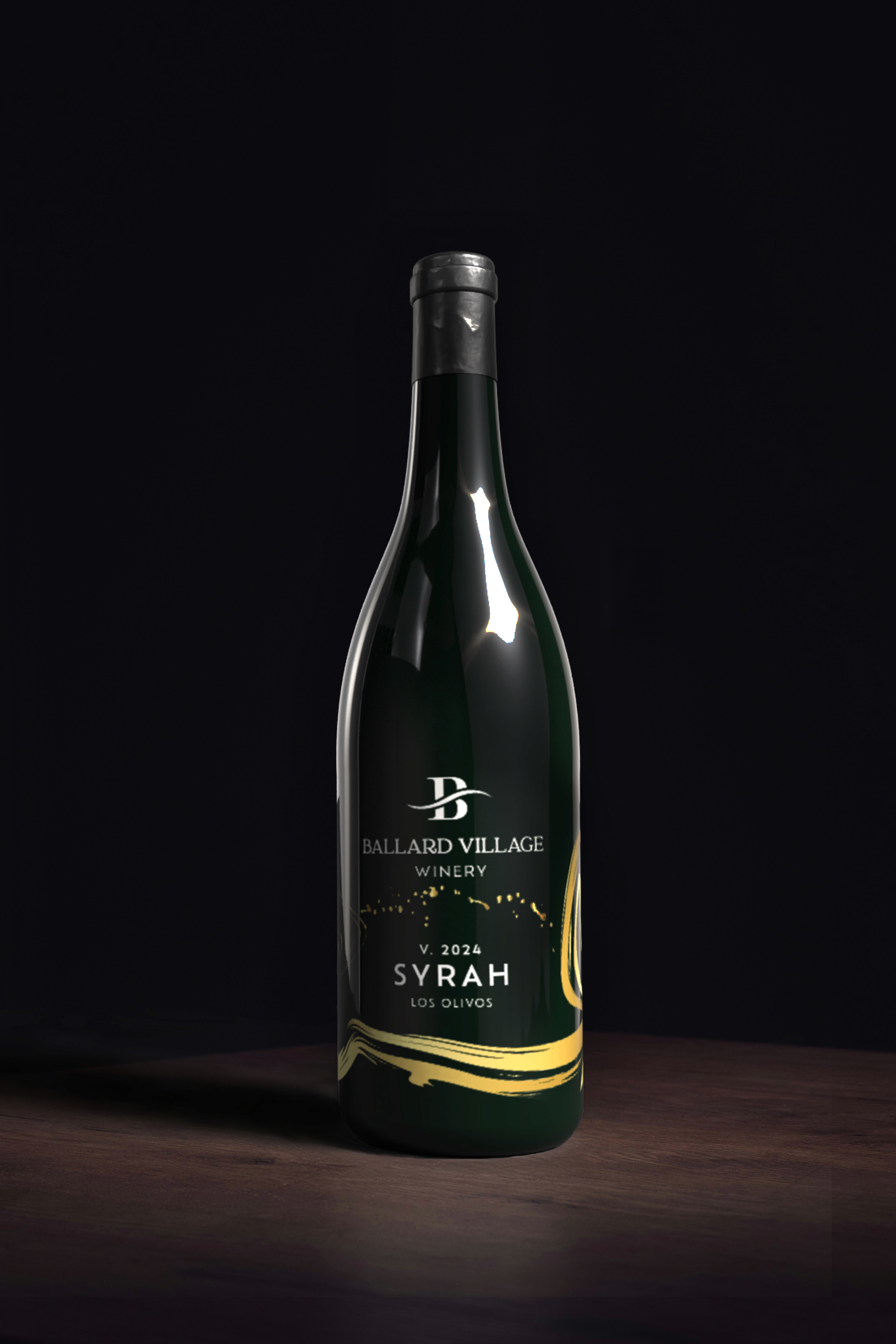 Ballard Village Winery, a boutique family-run winery in California's Santa Ynez Valley, lacked any brand identity: no logo, no digital presence, and an outdated wine label featuring generic grape motifs. They needed a sophisticated, timeless label for their 2024 Syrah that could help them stand out in California's saturated wine market of over 6,000 wineries while establishing a cohesive brand foundation for future growth. Working with a team, I developed a comprehensive brand package that went beyond just a wine label. We created a new logo, color palette, and style guide that conveyed elegance, family tradition, and exclusivity (key values for their target market of wine enthusiasts aged 35-70). Instead of a traditional paper label, we screen-printed directly onto the glass bottle using 24-karat gold ink, creating a luxurious, tactile experience that elevated their shelf presence. The minimalist design adhered to TTB wine regulations while maintaining the sophisticated aesthetic the clients wanted. The result was a unique, sustainable packaging solution that positioned Ballard Village Winery as a premium boutique brand capable of competing with established wineries in the Los Olivos AVA.